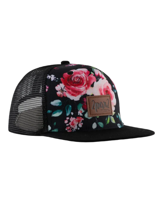 Casquette noire avec imprimé de fleurs - Deux par Deux