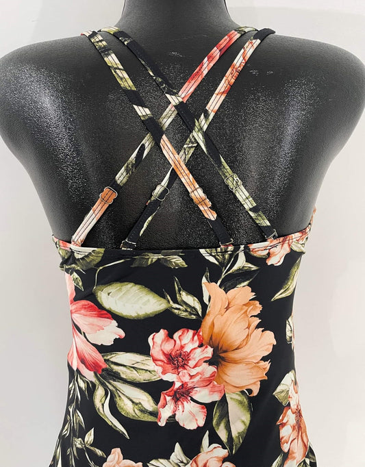 Tankinki noir imprimé de fleurs - Nass-eau