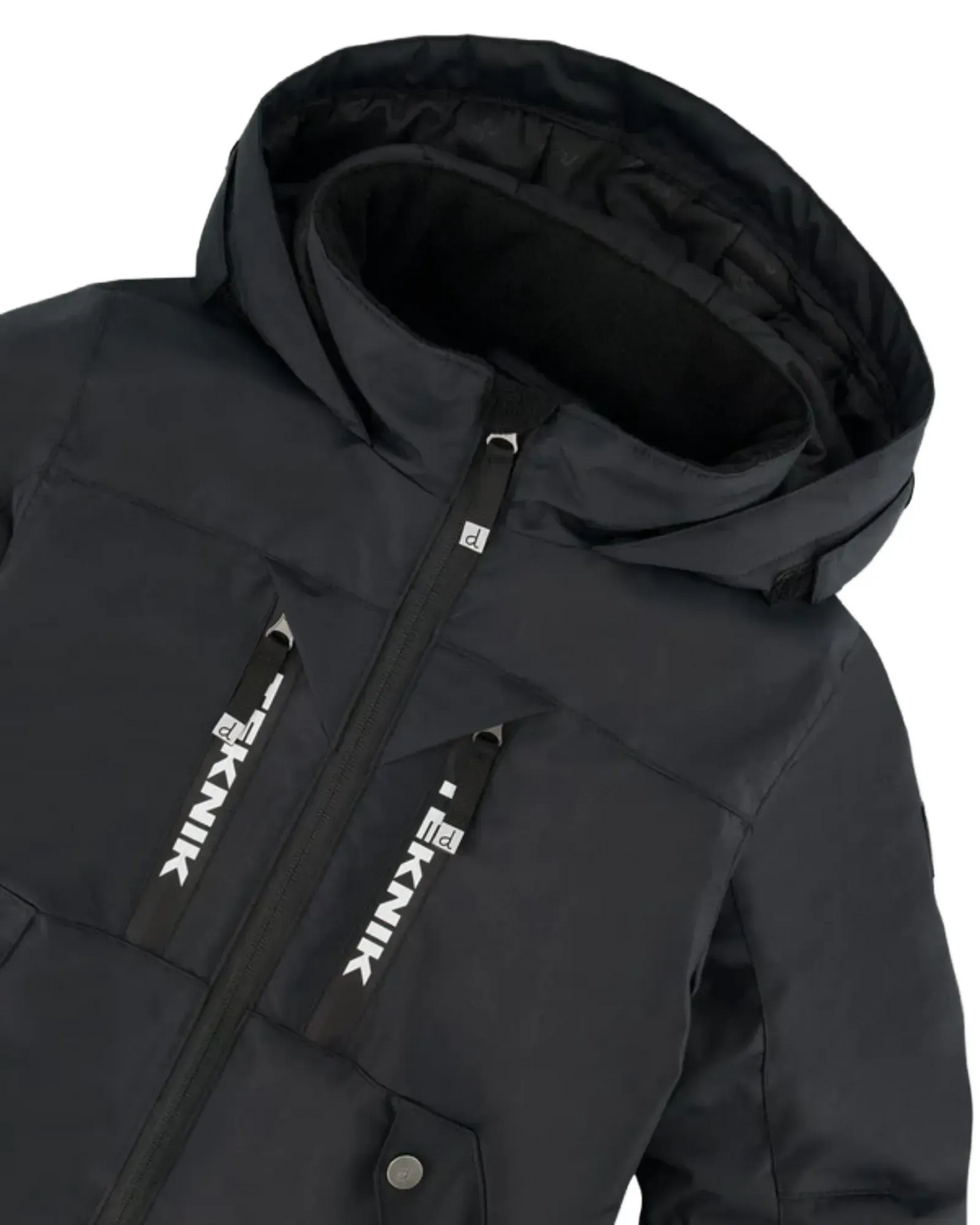 - Capuchon ajustable aux contours et à l’arrière de la tête, assez grand pour porter par-dessus le casque de ski