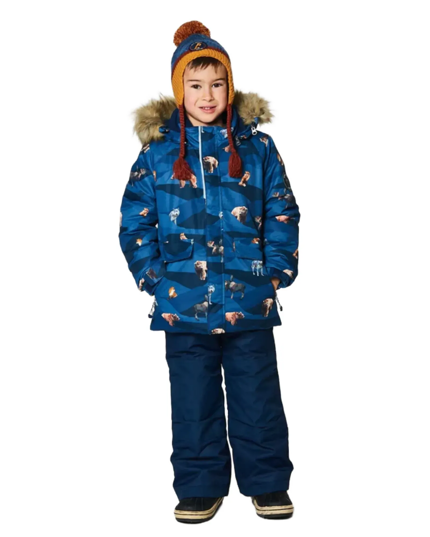 - Capuchon détachable avec fourrure synthétique amovible (OU Capuchon détachable s’il n'y a pas de fourrure). Pare-neige autour du capuchon